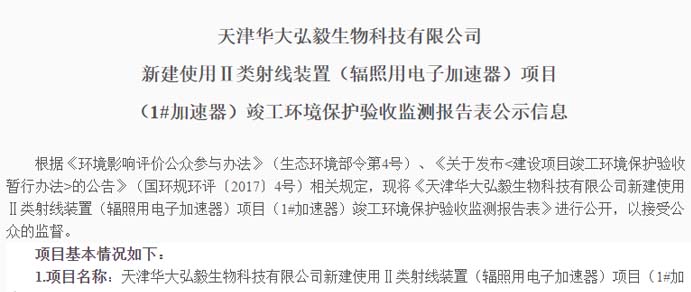 桂林華大生物科技有限公司使用電子加速器輻照項目竣工環(huán)境保護(hù)驗收信息公示